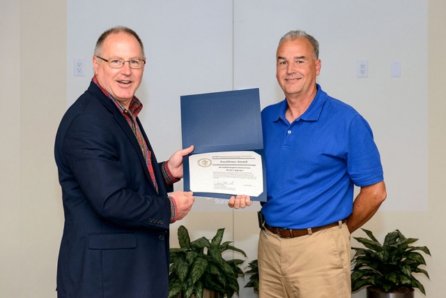 Dwain Coppenger (right) accepts the NNSA Excellence Award from James McConnell.