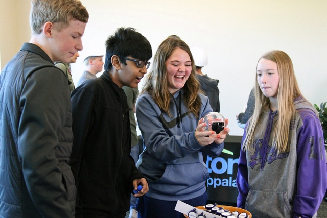 Students interact with industry displays at the Dream it. Do it. kickoff at Oak Ridge Associated Universities’ Pollard Auditorium.